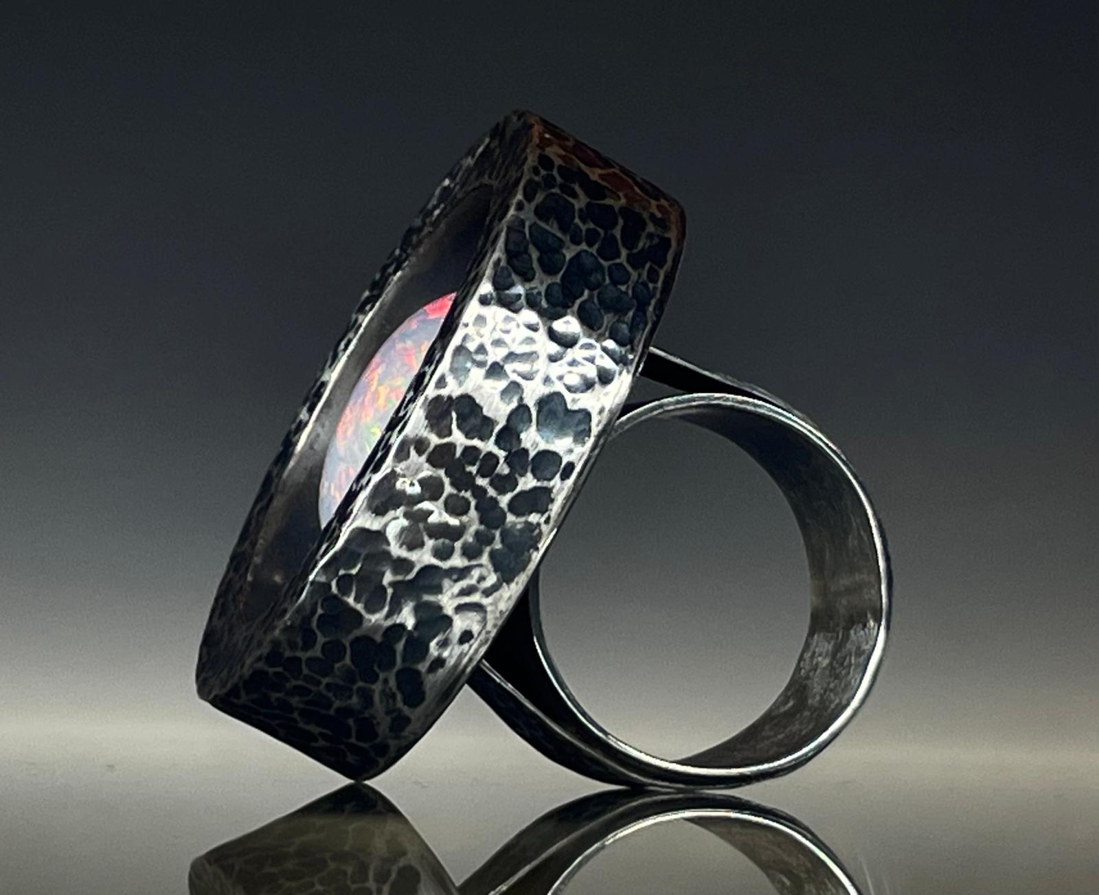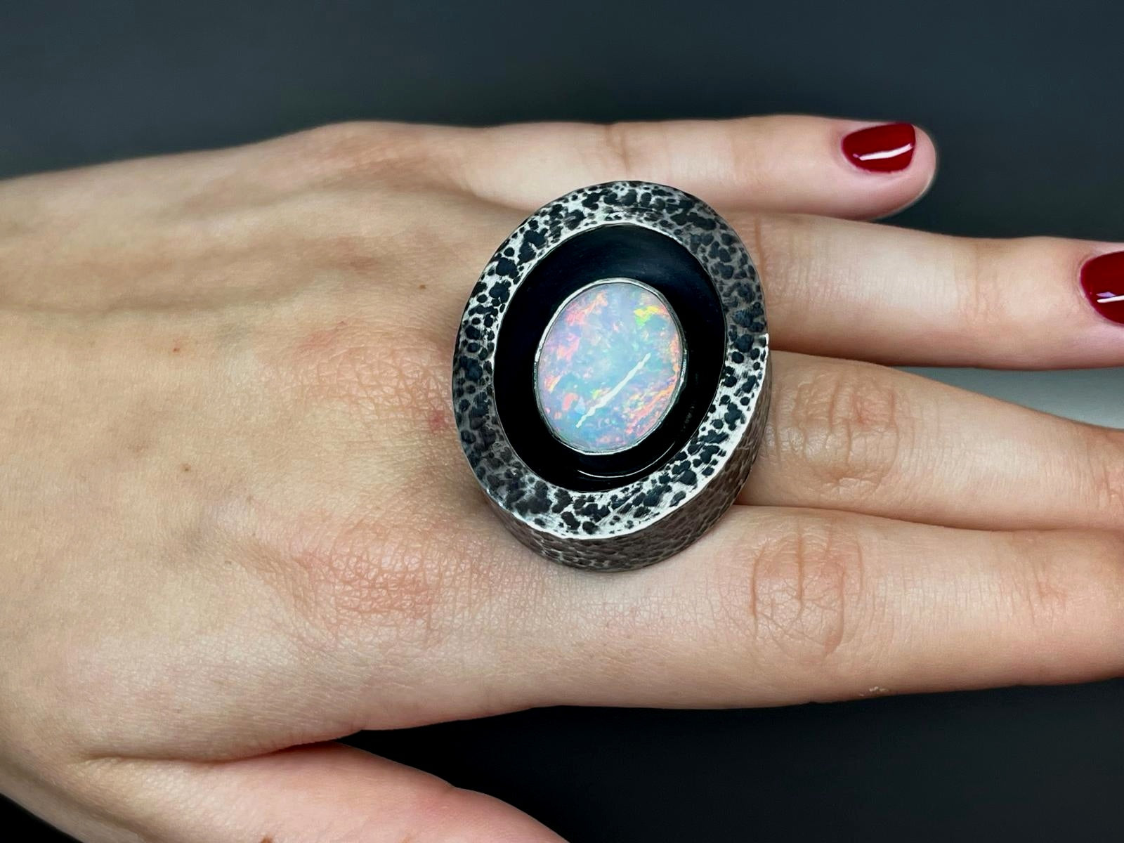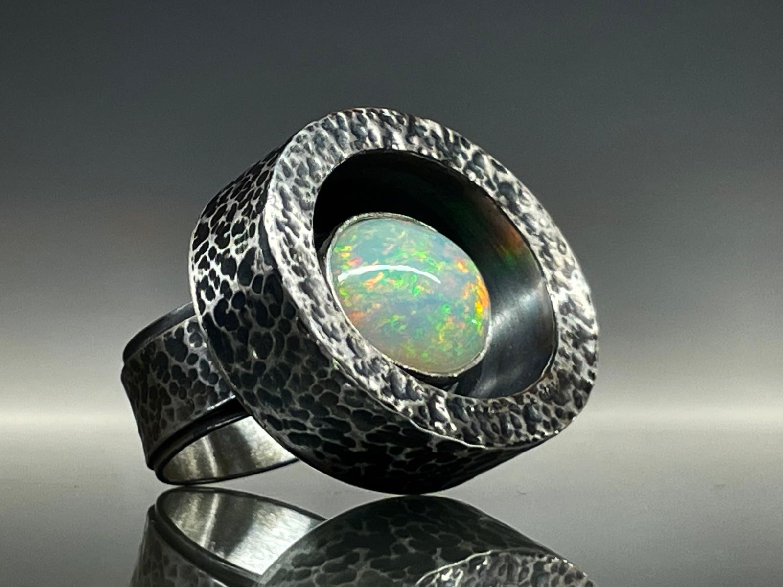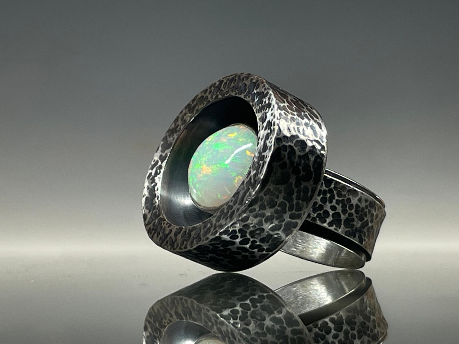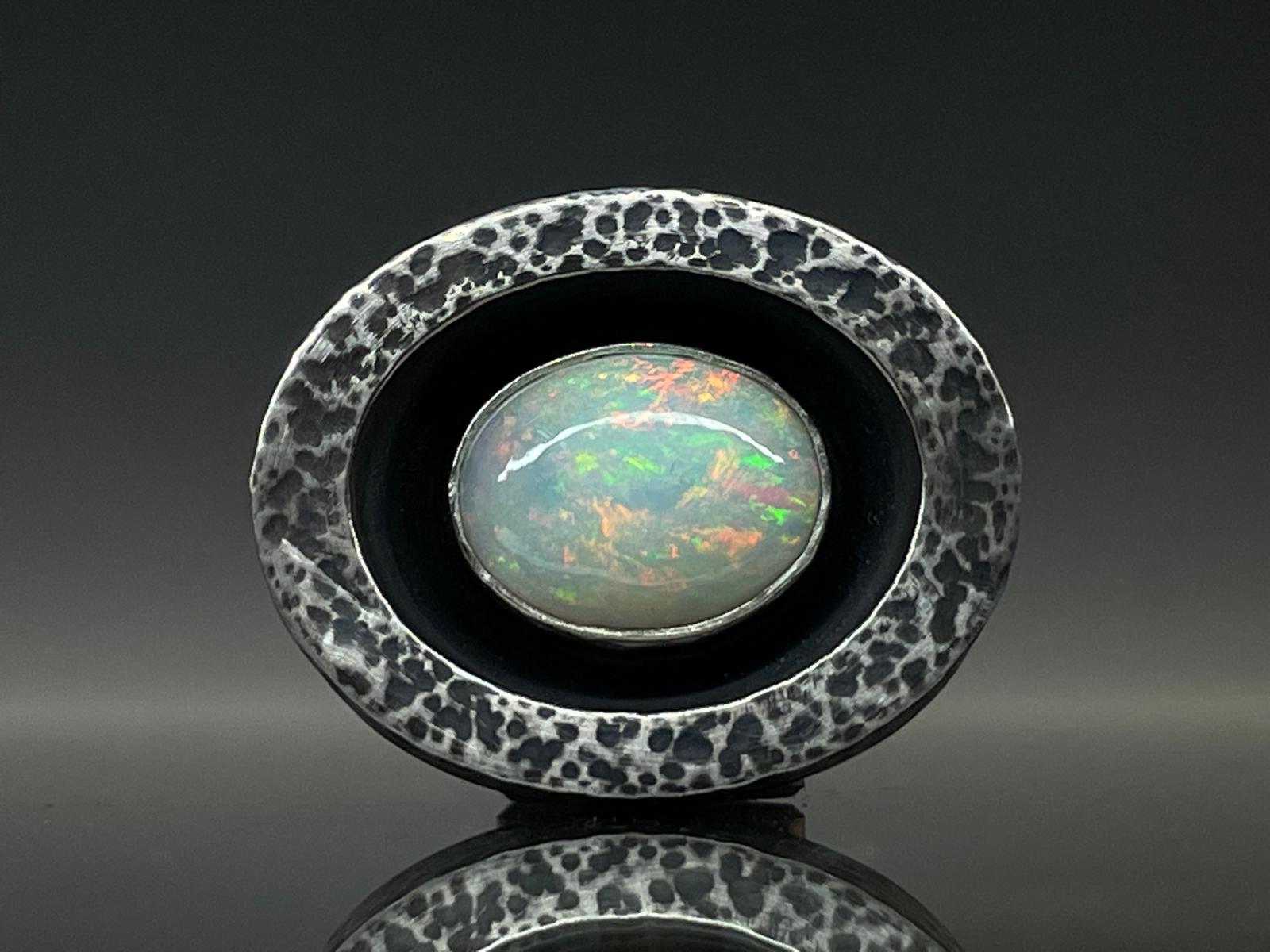 Duży srebrny pierścień z opalem