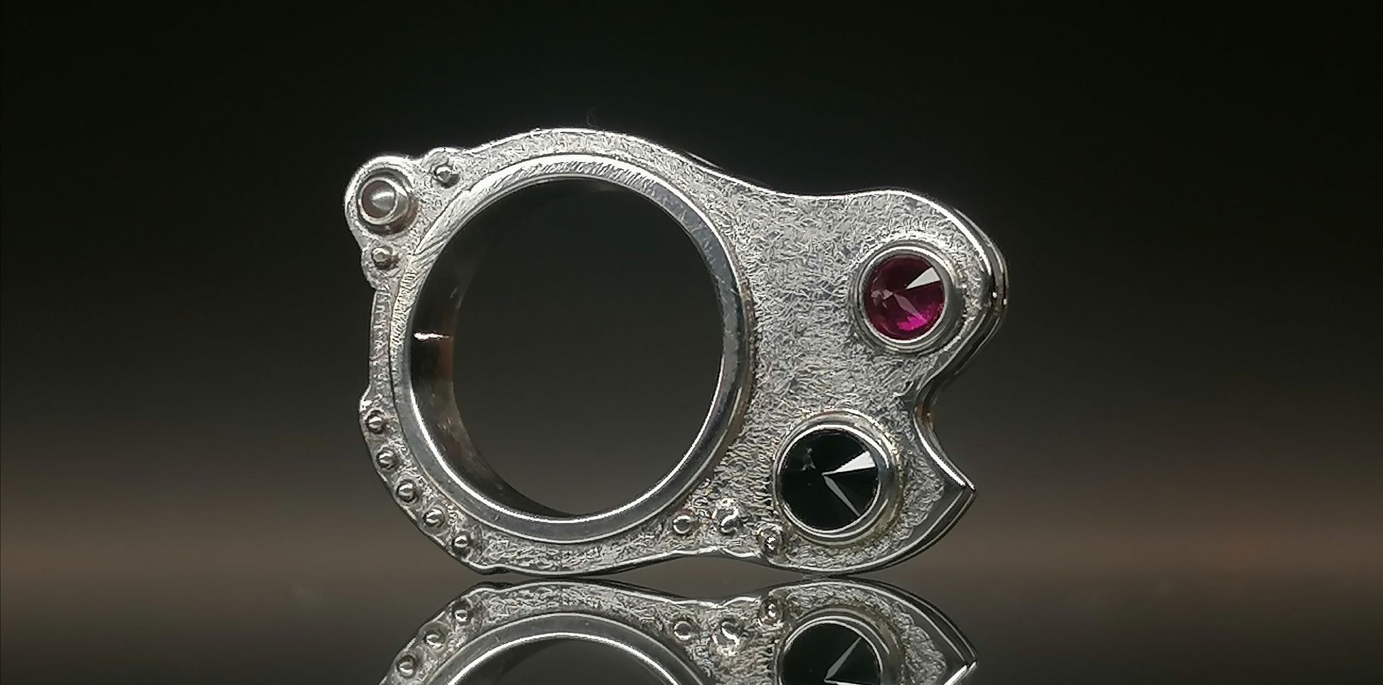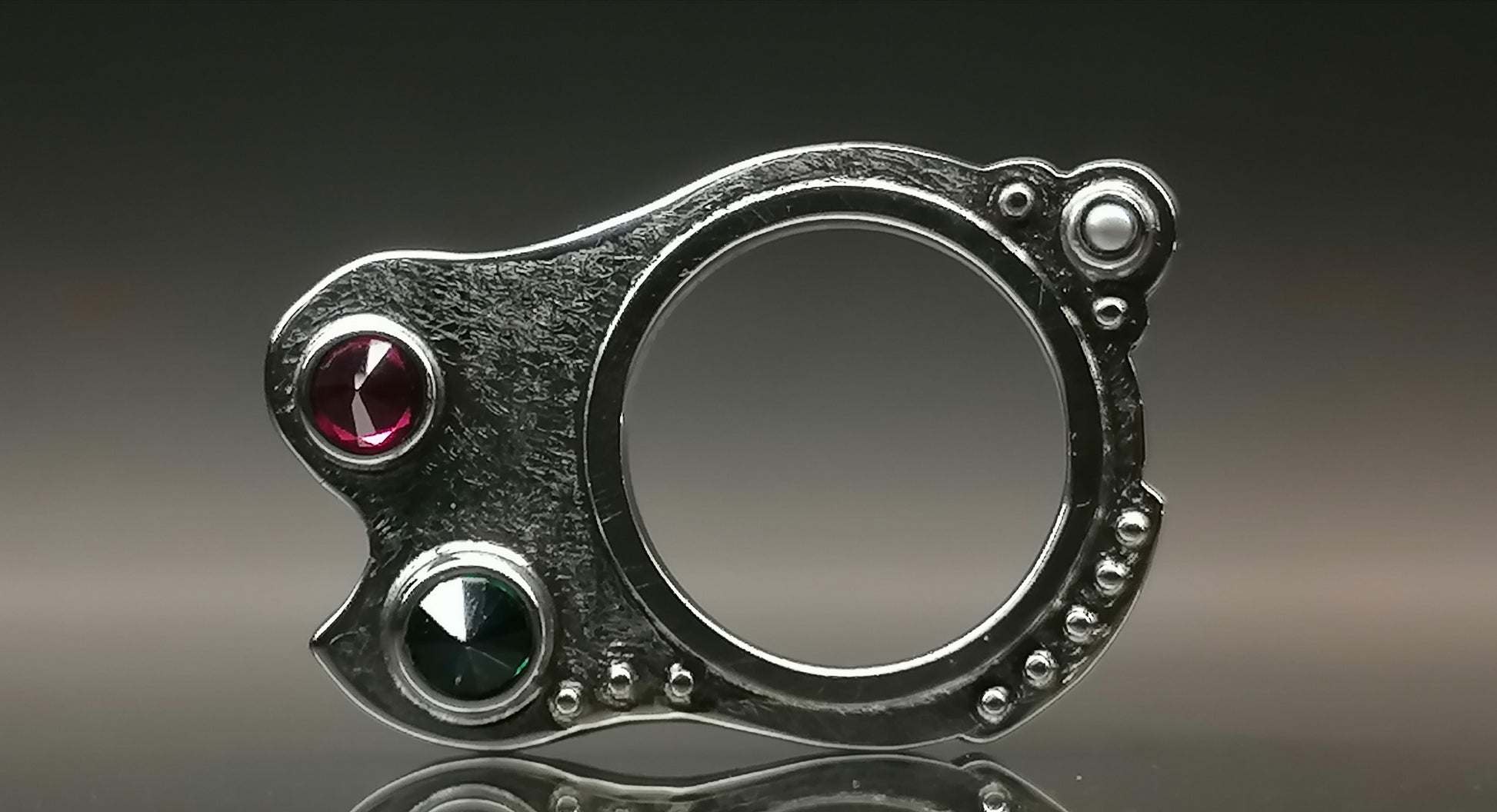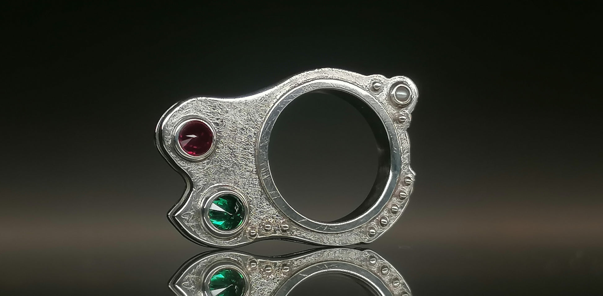 Srebrny pierścionek z cyrkoniami oraz perełami