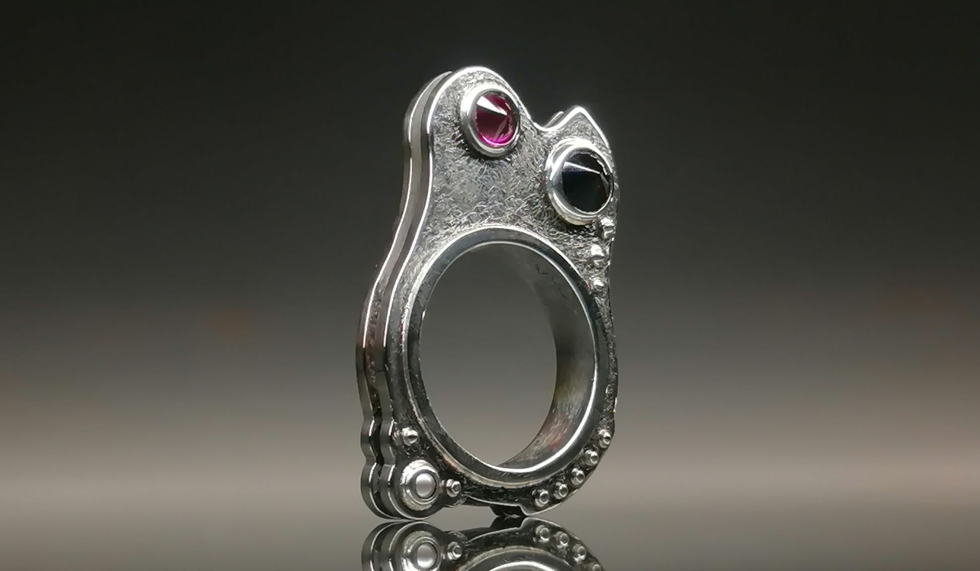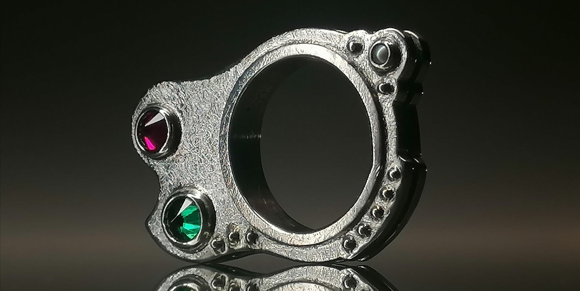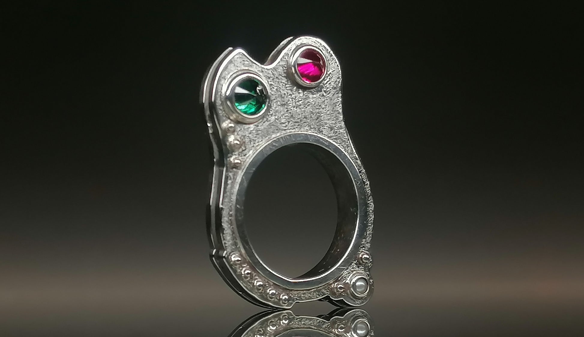 Srebrny pierścionek z cyrkoniami oraz perełami