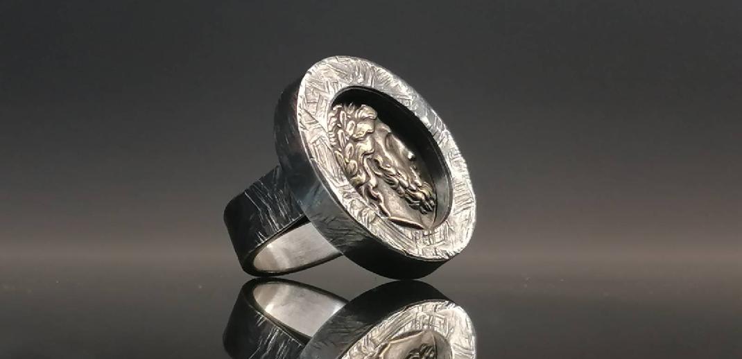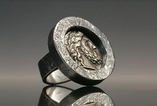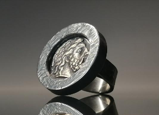 Srebrny pierścień z monetą